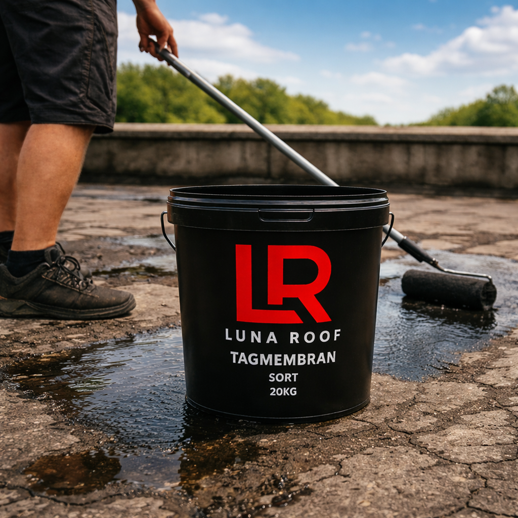 Påfør Luna Roof tagmembran med rulle eller pensel for en 100% tæt og UV-beskyttet overflade.